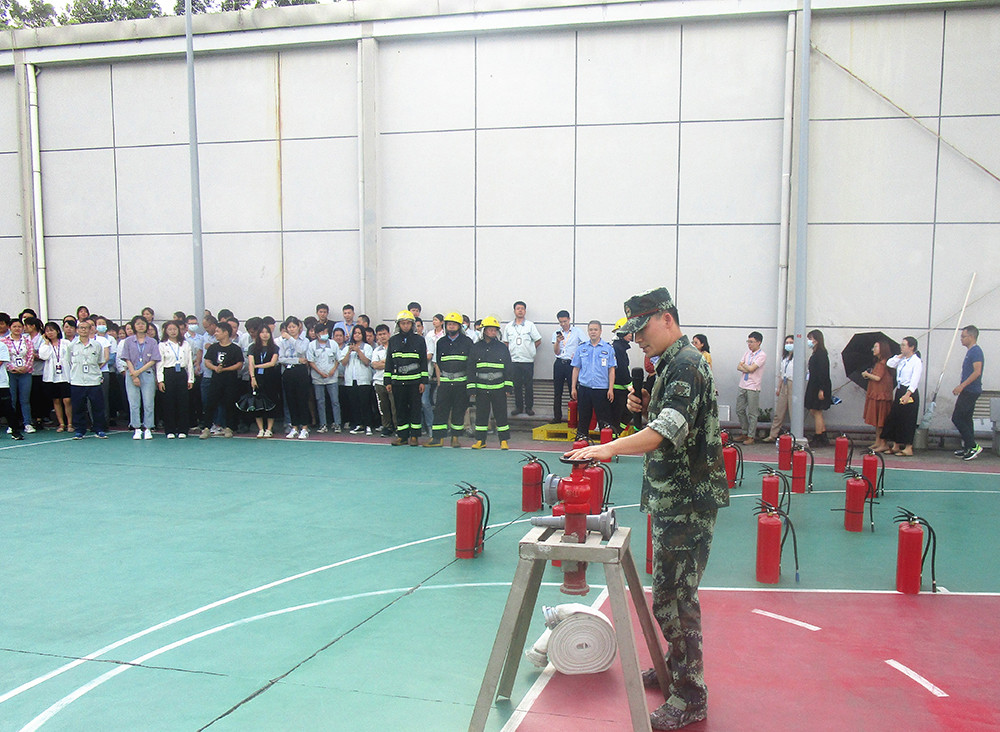 At hearing the fire alarm bell sounding at 3:30 p.m., employees on each floor quickly set off to run to the safe evacuation passage, and the fire control officer of the evacuation group on each floor quickly reached the key exits to guide the employees to safely evacuate to the basketball court as soon as possible. At the same time, members of the rescue team were fully armed and ready to go to rescue and ambulance the wounded at all times, while the alert team sent personnel to scoop out the fire truck.