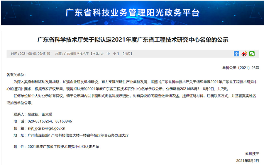 It is understood that Guangdong Engineering and Technology Research Center serves as a carrier ofa market-oriented system for technological innovation in which enterprises are the main players and synergy is created through the joint efforts of enterprises, universities, and research institutes, seeking to speed up enterprise R&D building and raise independent R&D level. This provincial-level titlegiven to KTC Commercialby the Department represents the official recognition of its capacity for R&D and technological innovation which underpins its technological strength and leading position in display engineering.