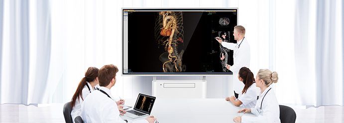 Pantalla grande de junta médica en el centro de imágenes