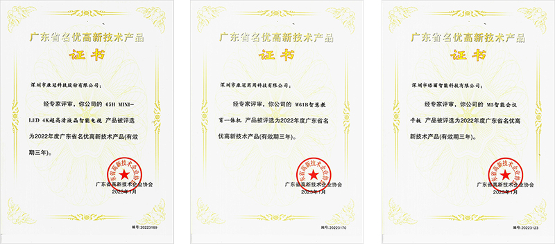 Recientemente, la Asociación de Empresas de Alta Tecnología de Guangdong publicó la "Lista de productos famosos de alta tecnología de Guangdong 2022". El "65H MINI-LED 4K Ultra HD LCD Smart TV" de KTC Technology, la "W61B Smart Education All-in-One Machine" de KTC CommercialDisplayTechnology y la "M5 Smart Conference Tablet" de Horion IntelligentTechnology fueron reconocidos como "Productos de alta tecnología famosos de Guangdong " en virtud de su fuerza innovadora, fuerza técnica y fuerza del producto.