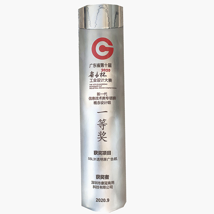 Le 24 octobre, la série d’activités de cérémonie de remise des prix du 10e concours de design industriel « Governor Cup » de la province du Guangdong s’est déroulée avec succès à la commune de design écologique Conghua, Guangzhou sous l’organisation du Département provincial de l’industrie et de l’informatisation. Lors de la cérémonie de remise des prix, les dirigeants du comité d’organisation du concours ont remis des coupes aux œuvres récompensées de trois catégories définies par le concours : design de produits, design conceptuel et design industriel. La machine à publicité à écran transparent 55L31, un produit issu de recherche et développement autonomes de KTC Commercial Display, a remporté le premier prix de la catégorie de design conceptuel du concours spécial de technologies de l’information de nouvelle génération.