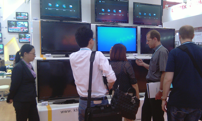 据了解,本届展会6686体育网页登录主打3D电视和LED电视,定位于高端制造商,从展会的过程来看,很多参展的客户都被漂亮的3D电视墙所吸引。同时,我司的LED电视外观漂亮、款式多样、私模,同样引来众多眼球,客户络绎不绝,经常所有桌子都坐满,展区外还不停有客户驻足。6686体育网页登录展出的3D电视不但带动了展区的人气,还体现出公司在3D电视生产上的超卓与领先实力。近年来,6686体育网页登录在3D电视上投入巨额资金进行研发、生产,终于结出了硕果,6686体育网页登录生产的3D电视,价格优惠,堪称全球最具竞争力;同时,质量上佳,体现出完全能与国内外大厂相匹配的强大实力,很多专业客户为展出的3D电视所吸引。可以说,6686体育网页登录生产的3D电视无论在品质上还是技术上,都得到了广泛认可。