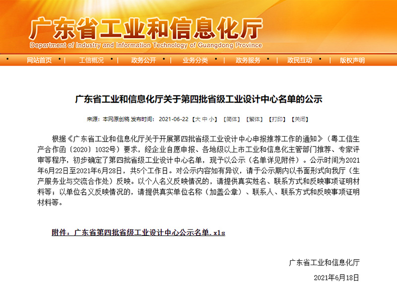 近期,广东省工业和信息化厅公布了广东省第四批省级工业设计中心名单,6686体育网页登录商用公司凭借强劲工业设计实力成功入选,通过“广东省工业设计中心”认定。