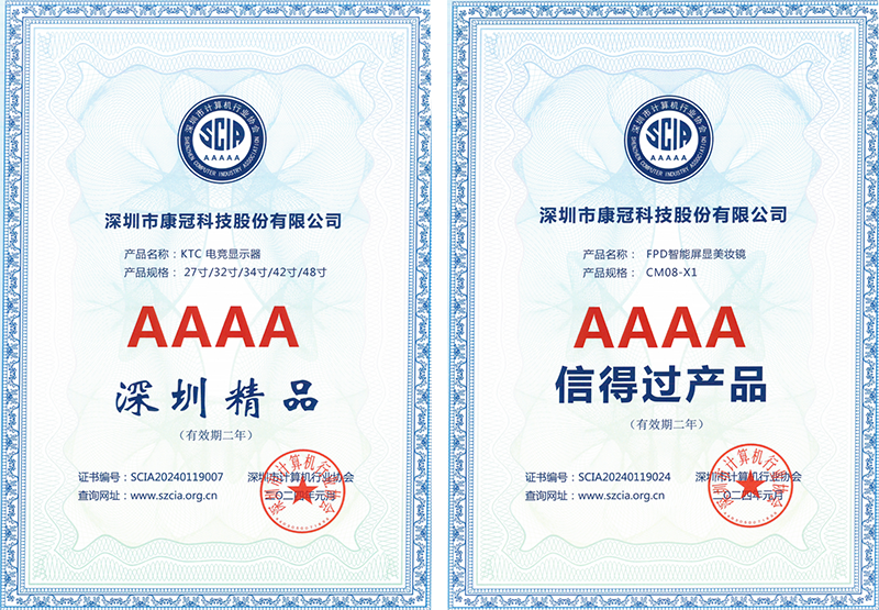 大会中,6686体育网页登录喜获“5A深圳精品企业”,旗下产品"KTC电竞显示器"荣获“4A深圳精品”,“FPD智能屏显美妆镜”荣获“4A信得过产品”等荣誉。