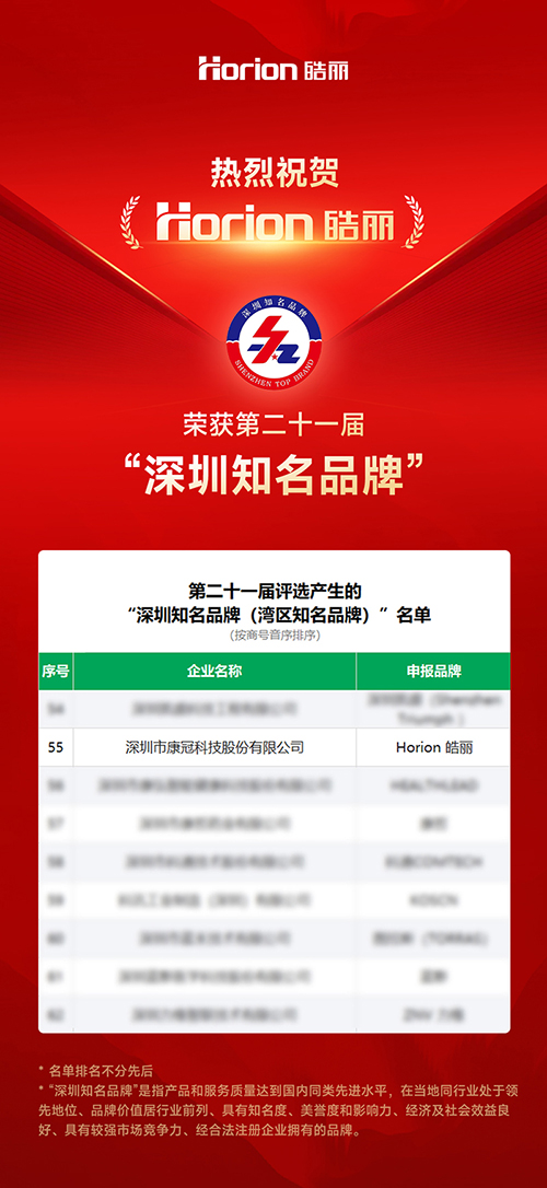 近日,深圳知名品牌评价委员会公布第二十一届“深圳知名品牌”评审结果,皓丽(Horion)凭借质量优良、市场竞争力强、自主创新能力强、社会信用良好、知名度高等入选第二十一届“深圳知名品牌”。