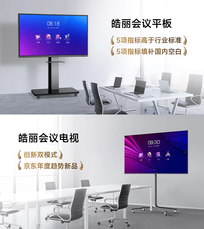 创新是引领品牌发展的第一动力。在创新方面,皓丽主力产品会议平板历经几代更新迭代,持续进化升级,不仅荣获多项专利,还成为深圳标准认证产品,5项技术指标高于行业标准、5项技术指标填补国内空白,引领国内会议平板向上发展;皓丽创新产品会议电视则凭借双模式的创新取得了上市即爆品的好成绩,并成为京东年度趋势新品。皓丽始终以前瞻视角引领业务升级,走在行业发展前列。