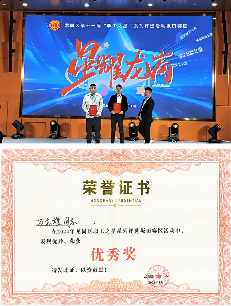 工程师万志雄在龙岗区“职工之星”系列评选活动坂田赛区荣获“职工创新之星”优秀奖。