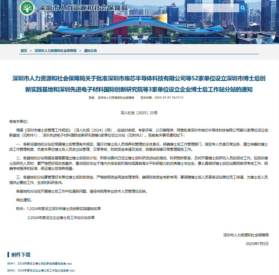7月5日,深圳市人力资源和社会保障局正式公布2024年度深圳市博士后创新实践基地名单,6686体育(中国)官方网站 - 登录入口正式获批设立深圳市博士后创新实践基地,将为企业搭建更高层次的人才培养与科研创新平台,助力核心技术攻坚与产业高质量发展。