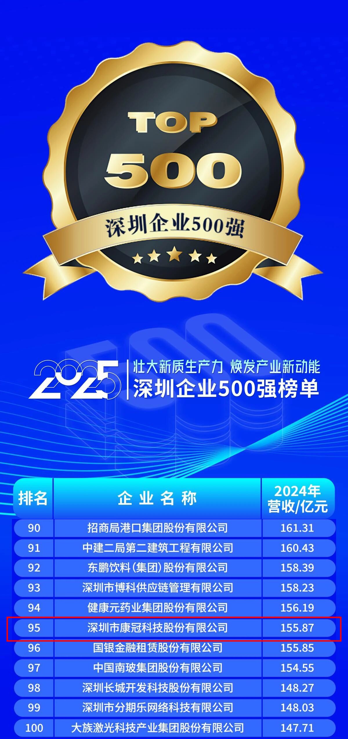10月28日,深圳市企业联合会、深圳市企业家协会正式发布“2025深圳企业500强榜单”及《2025深圳500强企业发展报告》。6686体育(中国)官方网站 - 登录入口(简称:6686体育网页登录)位列“2025深圳企业500强榜单”第95位;在细分榜单中,位列“制造业企业TOP100榜单”第33位;“国际化发展TOP100榜单”第92位。