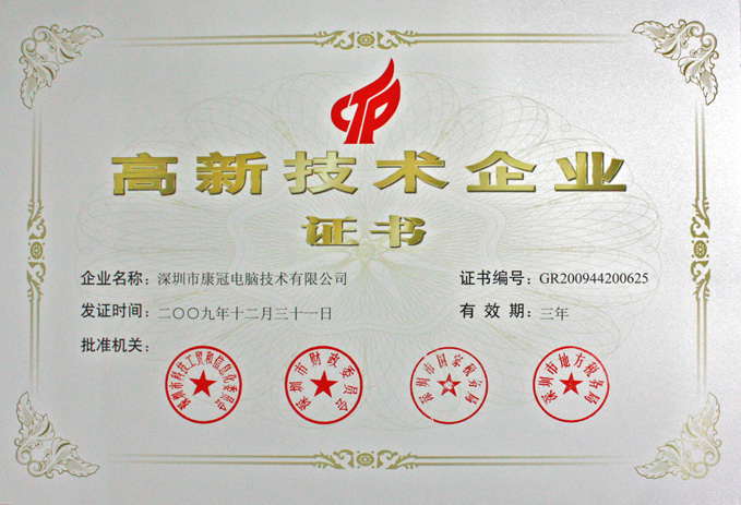 今年1月4日,我司入选了2009年第三批拟认定国家级高新技术企业名单,经过三个月的公示期,于近日正式通过国家高新技术企业认定。根据相关规定,获得国家高新技术企业认定资格的企业将获国家重点扶持,可申请三年内享受 15%的所得税优惠。